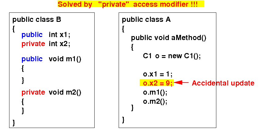 • Limiting access to variables will reduce accidental update of variable(s) by a method from another class !!!