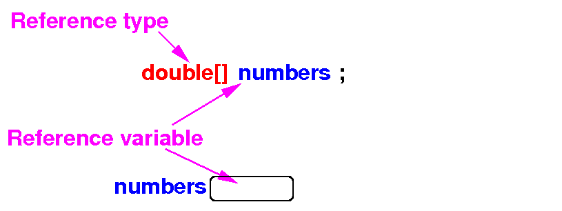 • Primitive type array variables (number[k]) contains values and is used in computations: