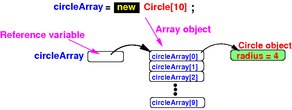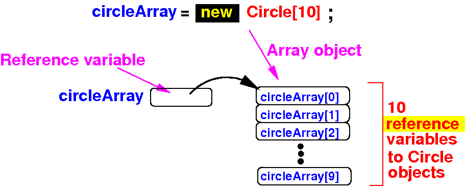 Note:   circleArray[i] is a Circle reference variable and can store a reference to a Circle object