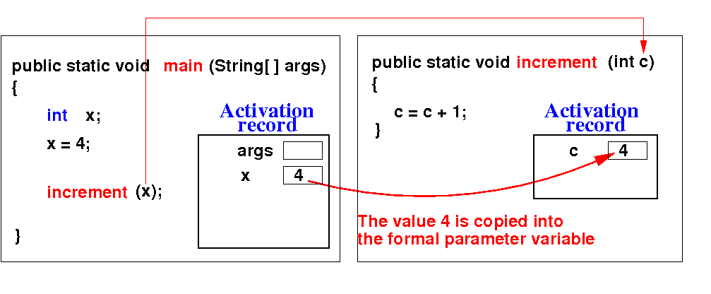 • Remember:   In Java, arguments are passed by copying to the parameter variables