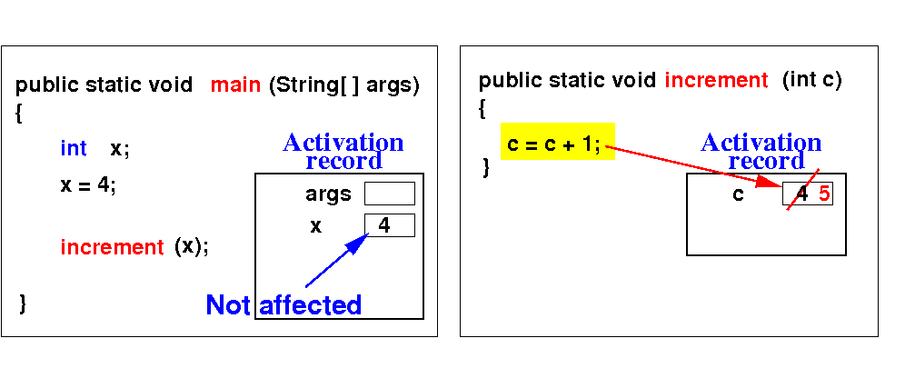• When increment( ) executes c = c + 1;, it updates the parameter variable c :