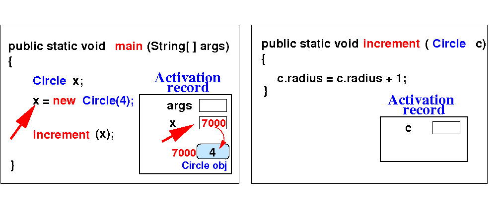 • When increment( ) executes c.radius = c.radius + 1;, it updates the radius variable through the reference c: