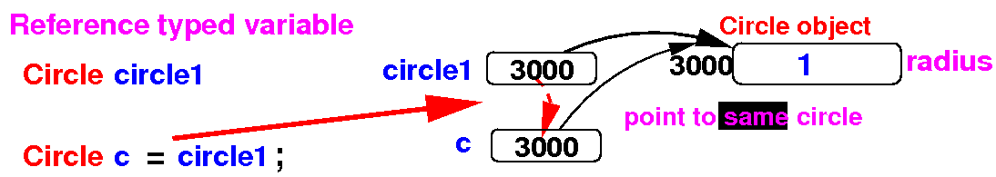 Note:   x in main( ) and c in increment( ) both reference to the same Circle object