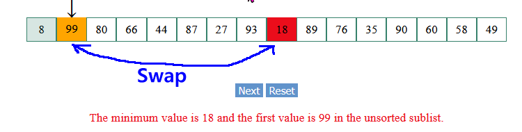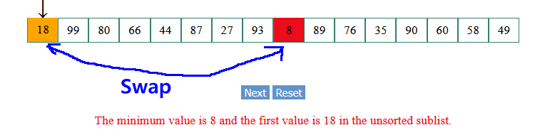 We look for a better minimum in the remaining elements: