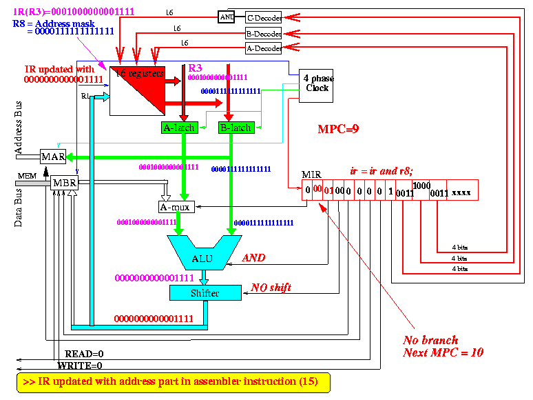9: ir := ir and r8; // Micro-program instructions that write