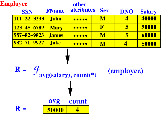 We must first form groups of employee tuples based on their DNO attribute (grouped by department number)